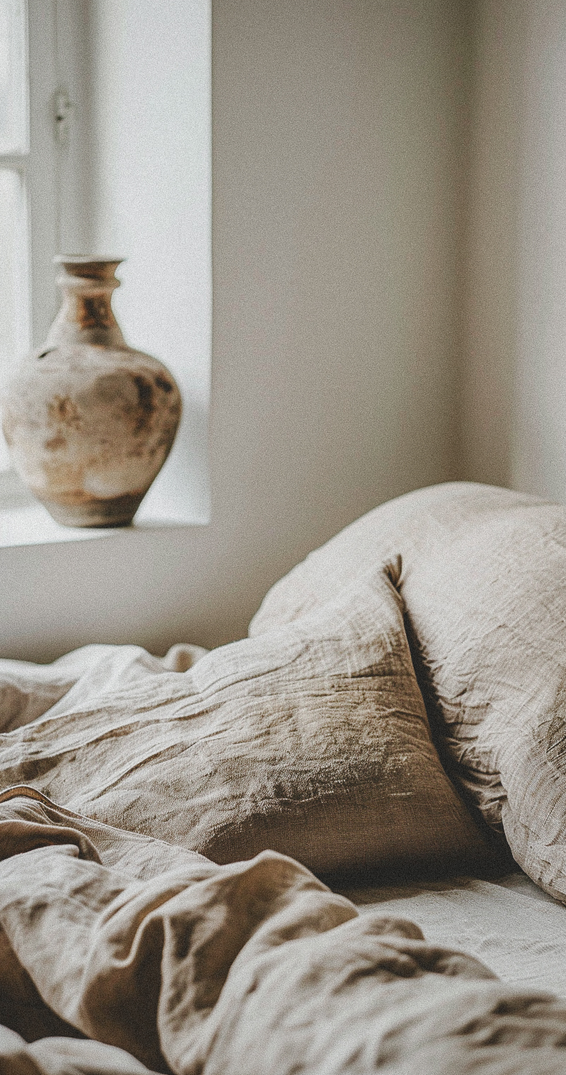 Breathability & Comfort: Ever wondered why linen sheets feel cool in summer yet cosy in winter? Linen’s natural fibres allow air to circulate, regulating temperature and wicking away moisture better than any other textile. (Source: National Sleep Foundation)
